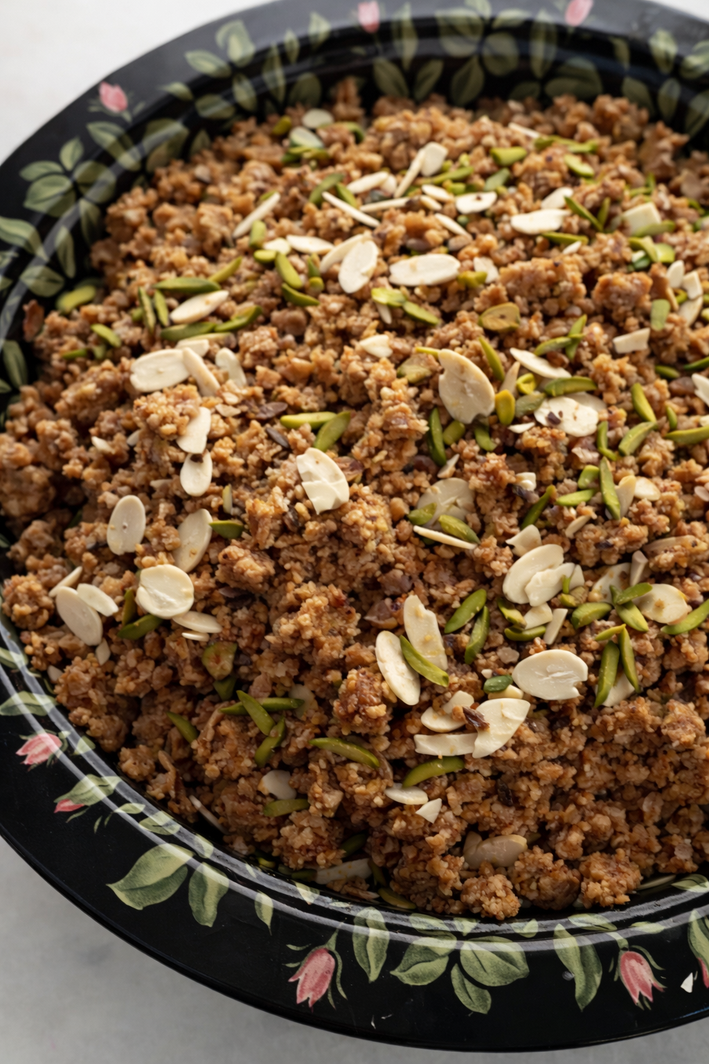 Batheetha is a traditional sweet made primarily from roasted flour, dates, and aromatic spices. It has been prepared in Emirati homes for generations and is especially associated with colder seasons, family gatherings, and moments of care and generosity.